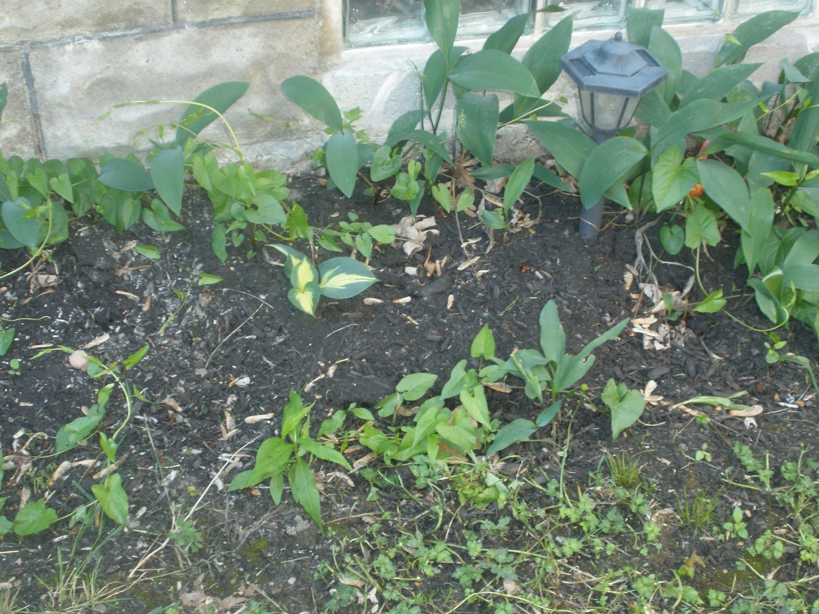 | More hostas . . . someone didn't tell the middle hosta it was supposed to get huge. |